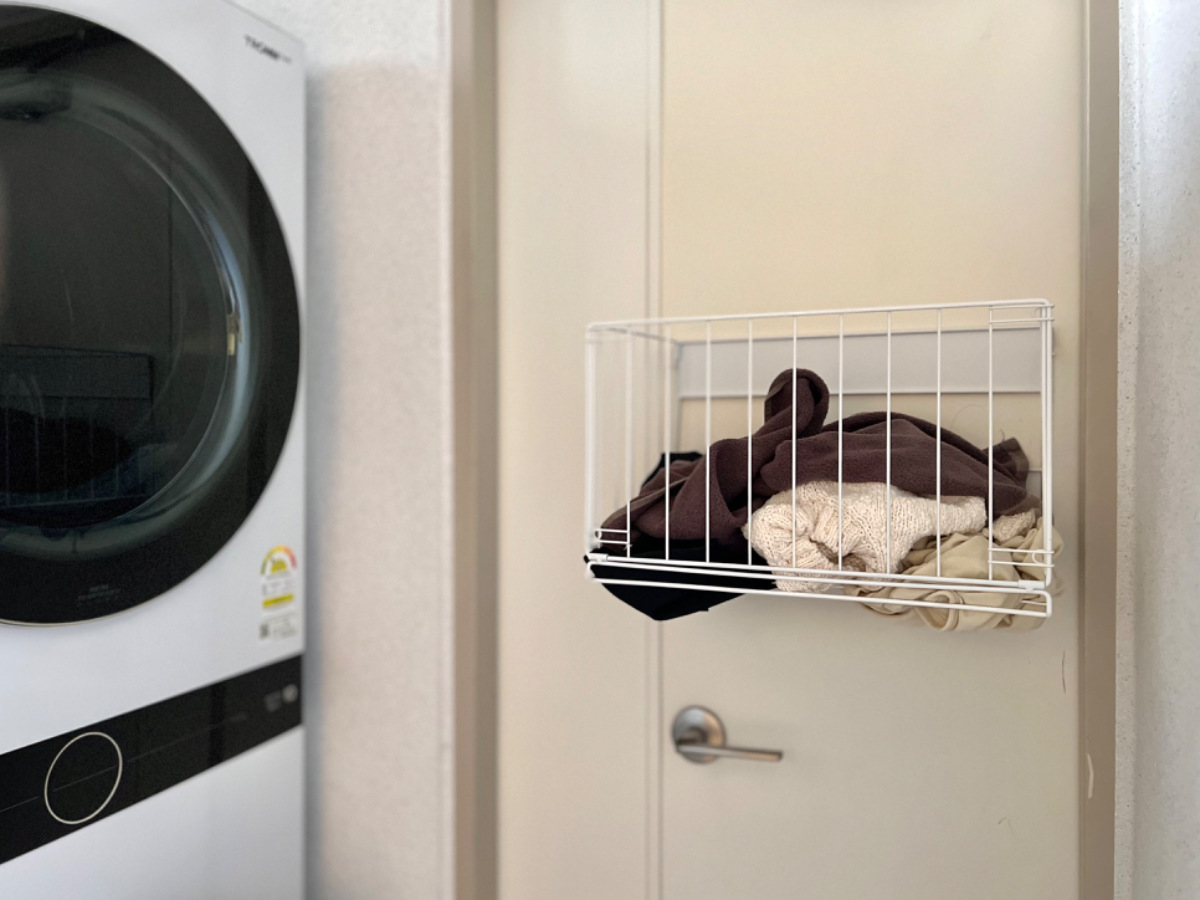 세탁실 청소시 빨래바구니를 이리저리 옮기면서 청소하지 않아도 돼요.