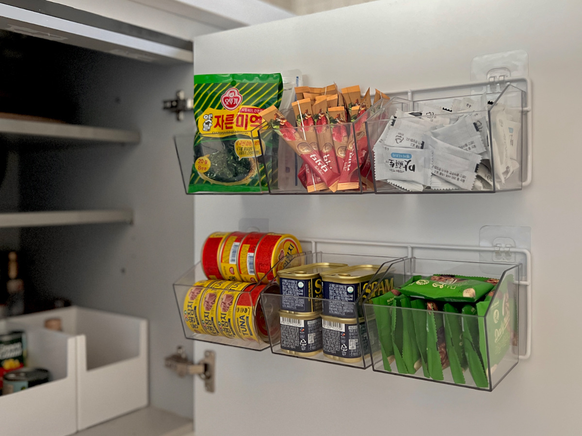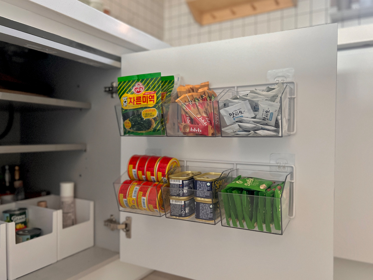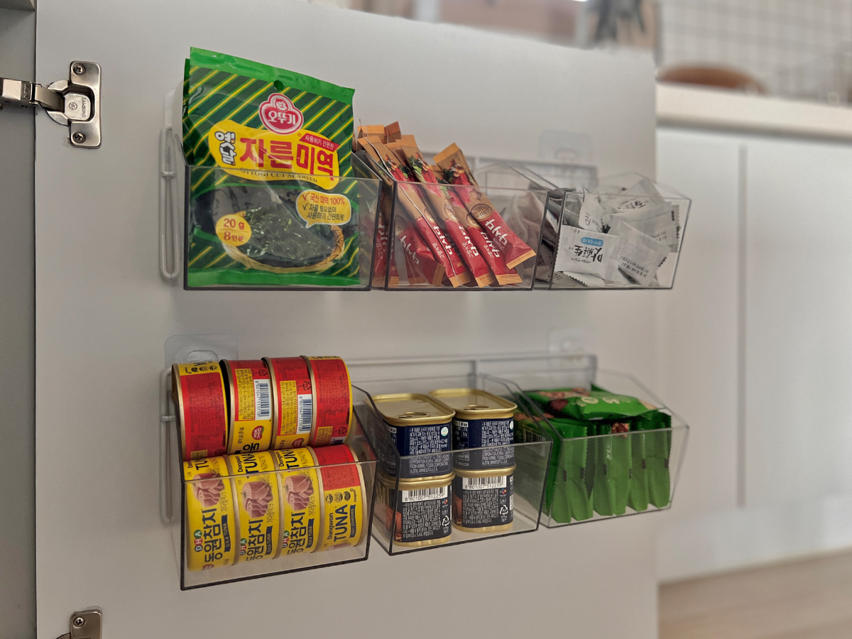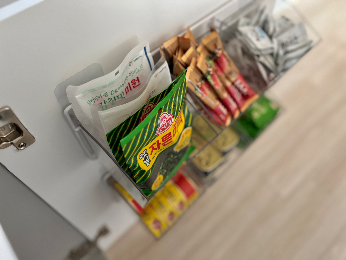 봉지 조미료부터 요즘 많이 사용하는 코인육수,캔류도 모두 보관이 가능해요.