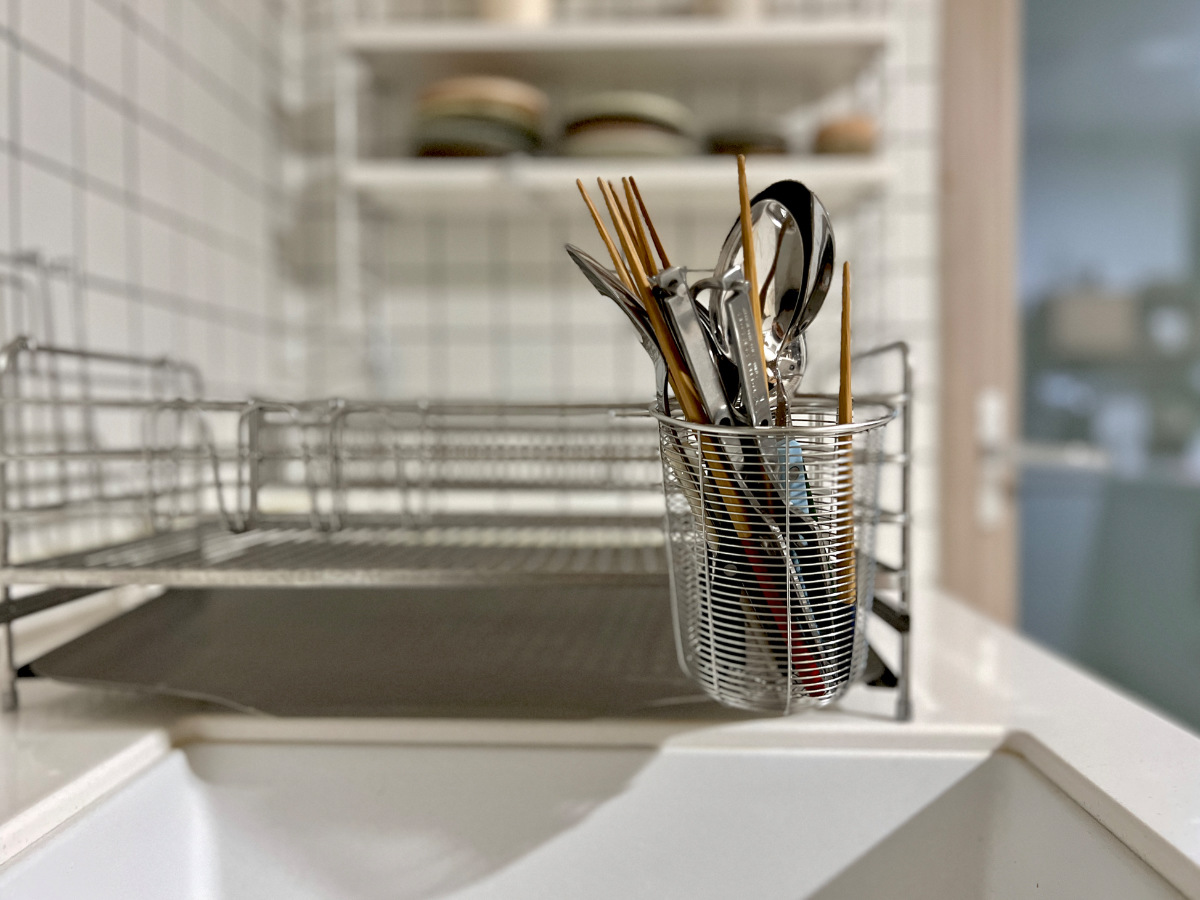 식기건조대에 거치 후 식기류 건조해보세요.